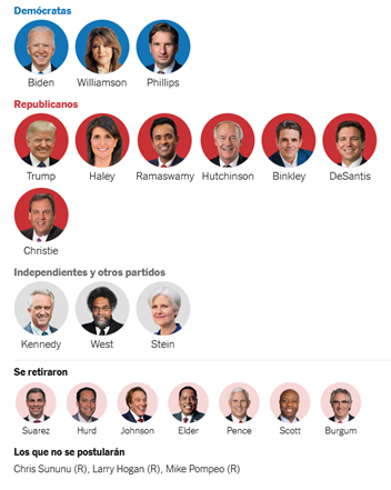 Los expertos políticos y medios estadounidenses declararon que no hay escasez de candidatos a la presidencia en 2024. Pero la mayoría trabajan bajo la sombra de los mismos dos hombres que se enfrentaron en 2020: el presidente Joe Biden y el expresidente Donald Trump (Trump podría concurrir a los comicios de 2024, como es su intención, e incluso si acaba entre rejas, pese a haber sido imputado con cargos penales por sus supuestos esfuerzos para revocar el resultado de las elecciones de 2020). Todo el mundo discute su futuro enfrentamiento por el puesto tan deseado.