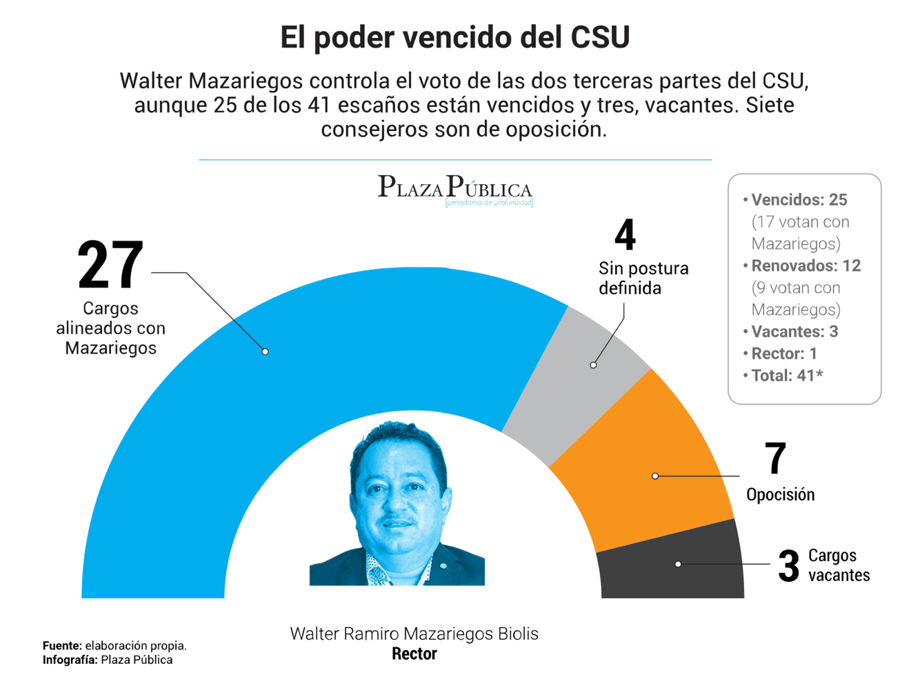 Desde una perspectiva democrática y normativa, el hecho de que una figura como Mazariegos, cuya administración está siendo objeto de cuestionamientos por irregularidades descaradas en la configuración del CSU, por la permanencia de consejeros con mandatos vencidos y por el bloqueo a la renovación representativa, pueda ejercer tanto poder dice varias cosas sobre la comunidad universitaria de la USAC:
